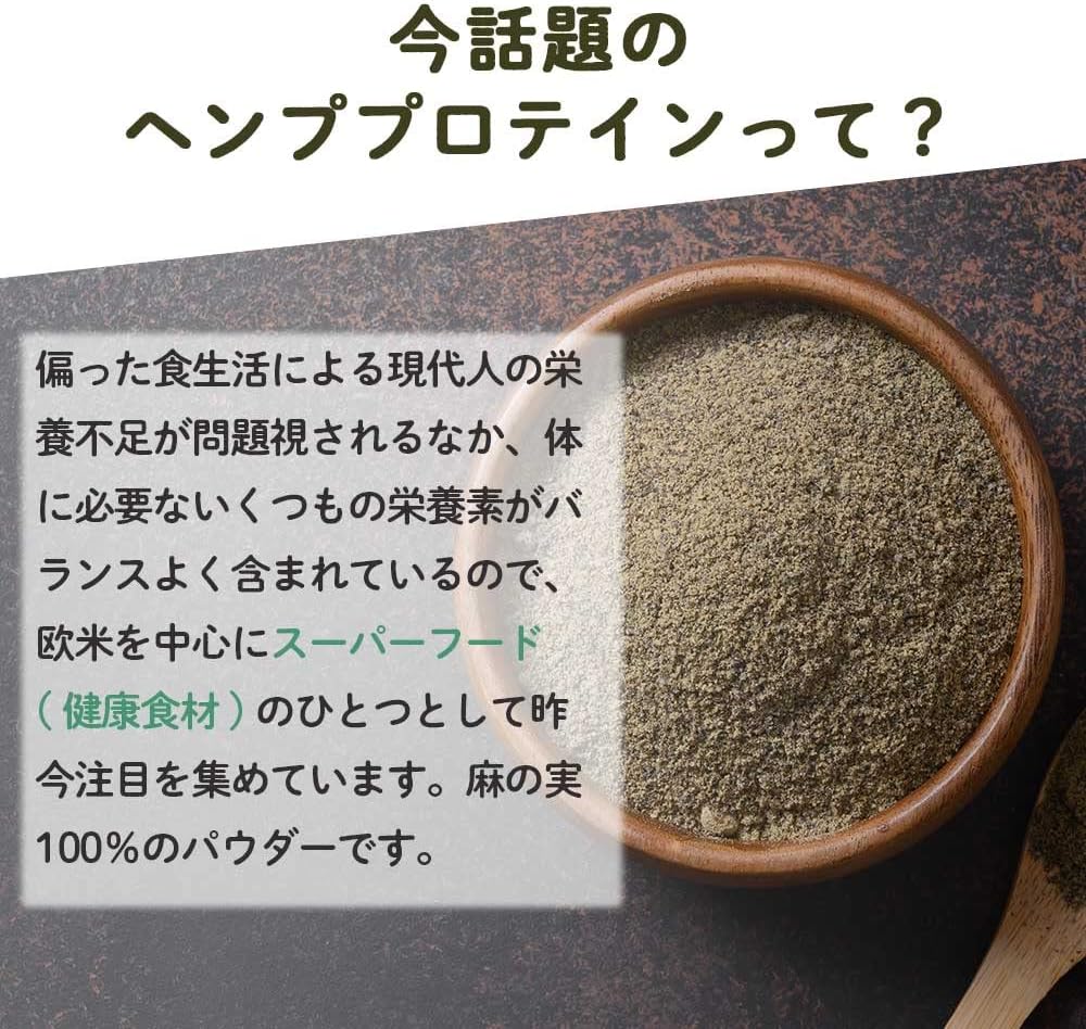 - 【良質な植物性たんぱく質が豊富!】必須アミノ酸全9種類を含有!たんぱく質は体を構成する重要な成分です。筋肉・内臓・皮膚・血液などなど、私たちの体のほとんどはタンパク質でできています。 人間の体をつくるタンパク質を構成しているのは全20種類のアミノ酸。 このうちの「必須アミノ酸」と呼ばれる9種類は、体内で合成することができないので食物から摂取する必要があります。スプーン大さじ3杯(約30g)で1日に必要な鉄・銅・亜鉛を摂取することができます。麻の実は必須脂肪酸をたっぷり含んでいます!