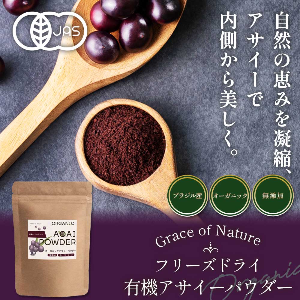Grace of Nature 有機 アサイー パウダー オーガニック フリーズドライ 粉末 ブラジル産 有機JAS認証 Bio Terrace(ビオテラス)